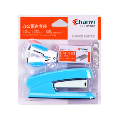 创易(chanyi)订书机起钉器24/6订书针常用中小型装订机办公财务装订用品组合套装 {蓝色/绿色}颜色随机,三合一组合套装 自营