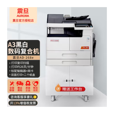 震旦AD228e/AD268e A3黑白激光数码复印机复合机打印复印扫描多功能一体机双面网络打印机 AD268e主机+输搞器+第二个纸盒+网卡 自营