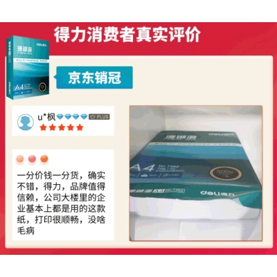 得力(deli)珊瑚海A4打印纸 70g克500张*5包一箱 销冠复印纸 双面草稿纸 整箱2500张 7361 自营
